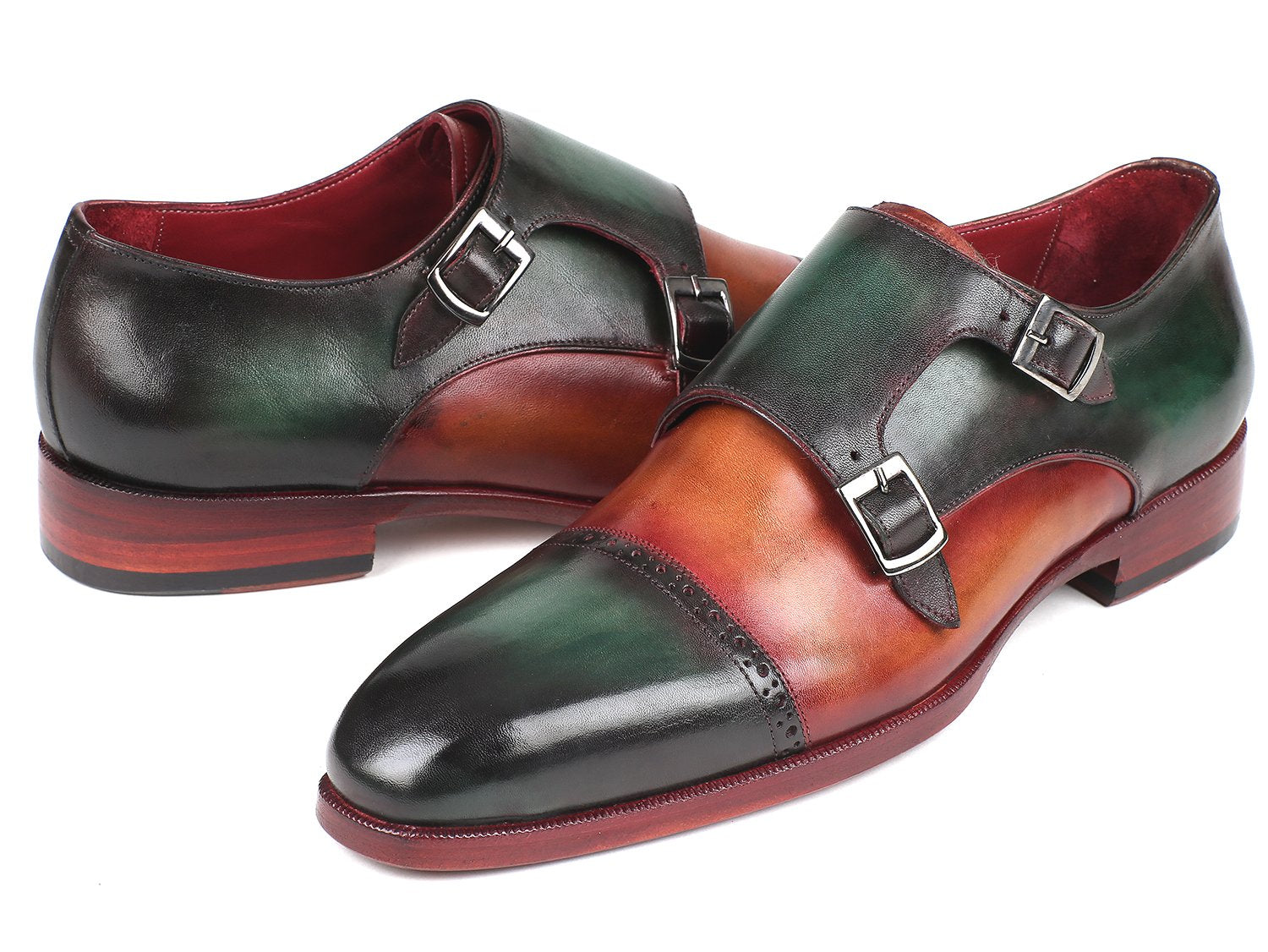 Paul Parkman Captoe Double Monkstraps Green & Camel (ID#045GC61)