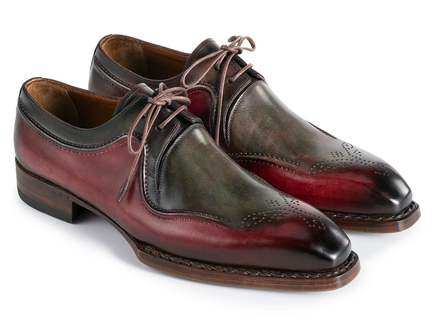 Paul Parkman Men's Hand-Welted Green & Brown Leather Derby Shoes (ID#326Y27)