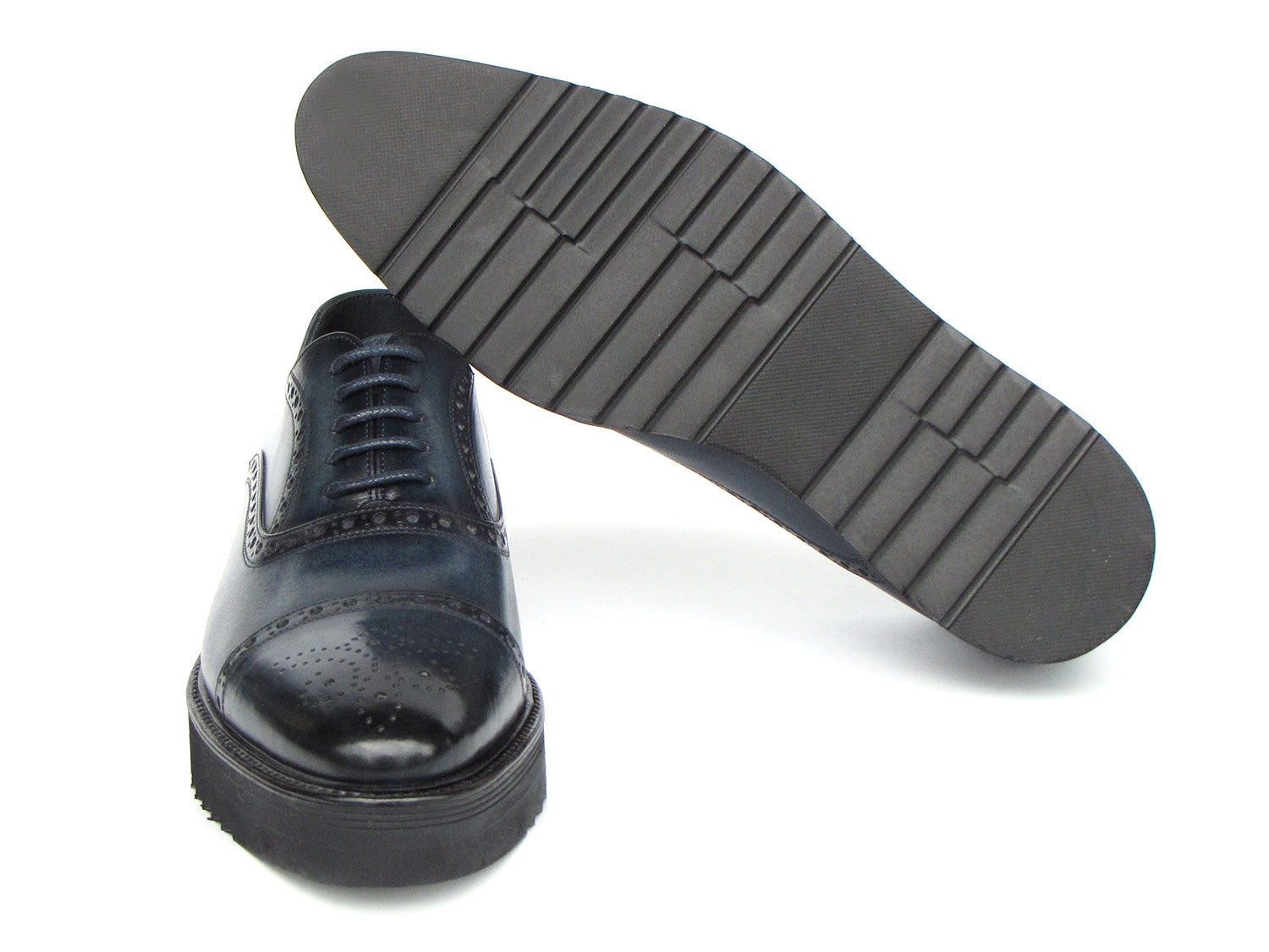 Paul Parkman Men's Smart Casual Cap Toe Oxford Shoes Navy Leather (ID#285-NVY-LTH)