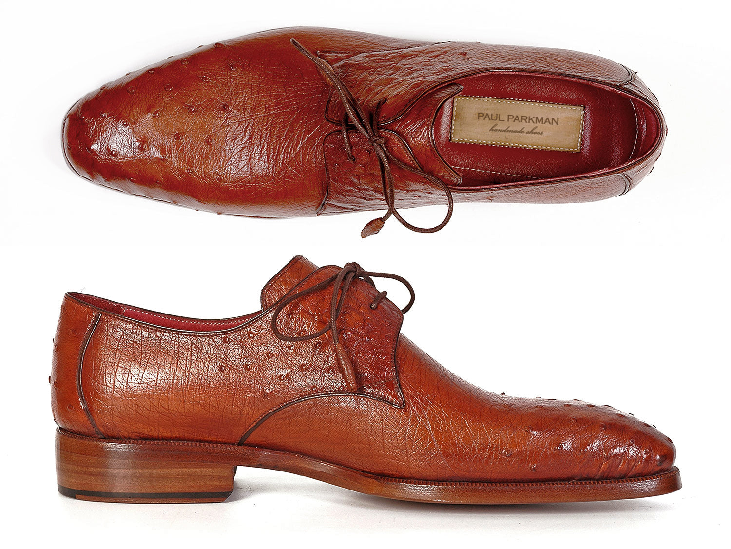 Paul Parkman Men's Tobacco Color Genuine Ostrich Leather Upper Derby Shoes (ID#33B76-TAB)